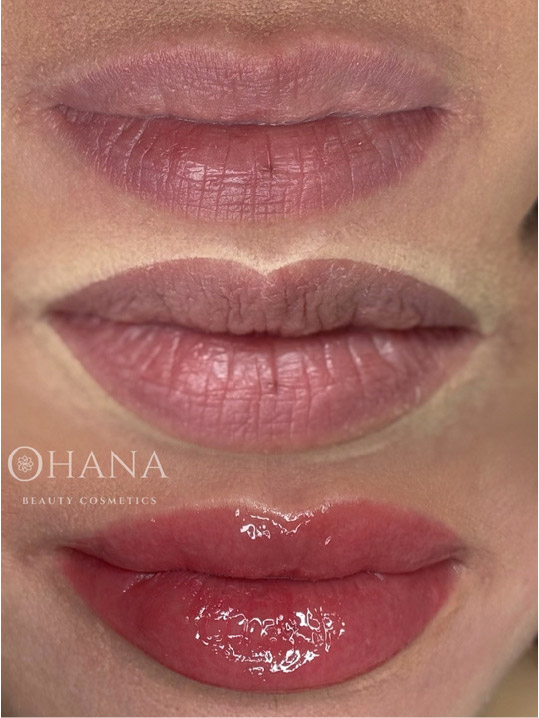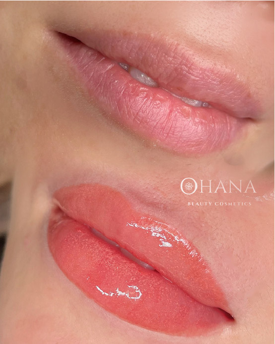 OHANA Lip 基礎講習は「低侵襲・高定着・短時間施術」のリップアートメイクスキルを学ぶ講習。施術開始から1時間での完成を目指します。