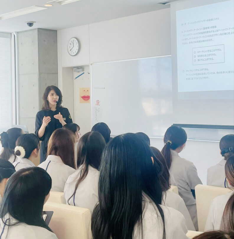 青山講師はパウダーブロウ、ナノストローク、リップ、アイライン、パラメディカルまで幅広い技術に精通し、手彫りとマシンの両方を自在に使い分けることができます。長年の経験をもとにした安定感のある手技と、理論に裏づけされた指導法が特徴で、誰でも再現できる実践的な技術を丁寧に伝えています。
